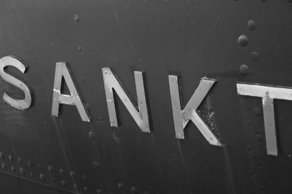 Del av fartygsnamnet i aktern på museifartyget SANKT ERIK.