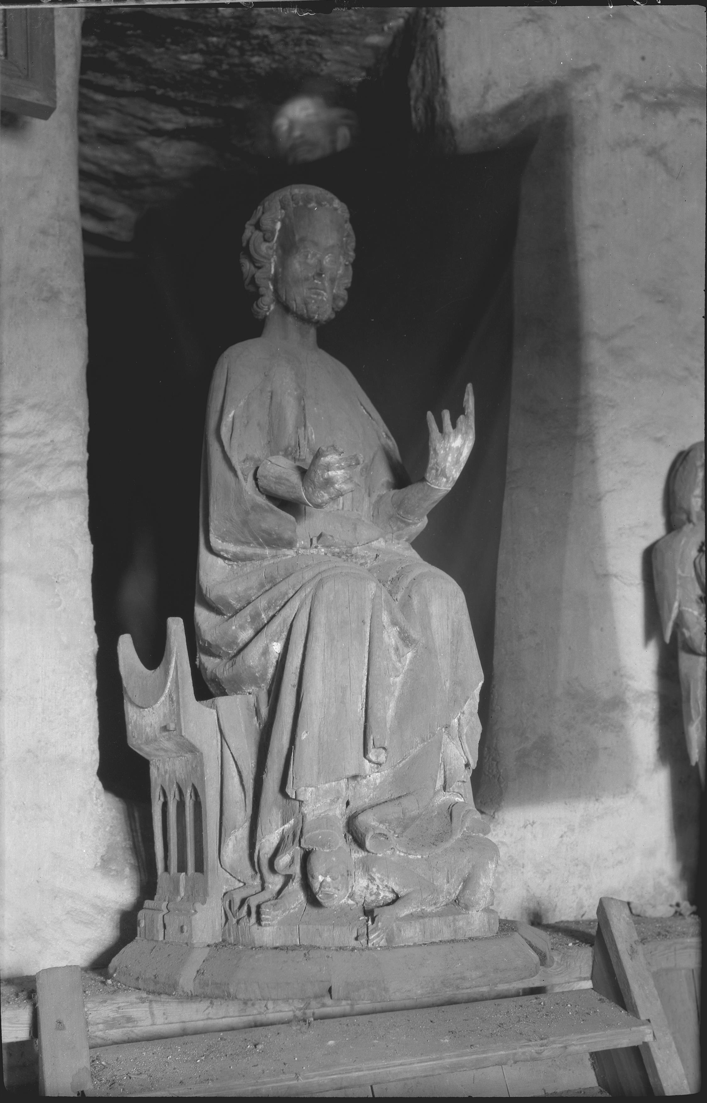 Skulptur i snidad ek, Sankt Olof, 1200-talet.