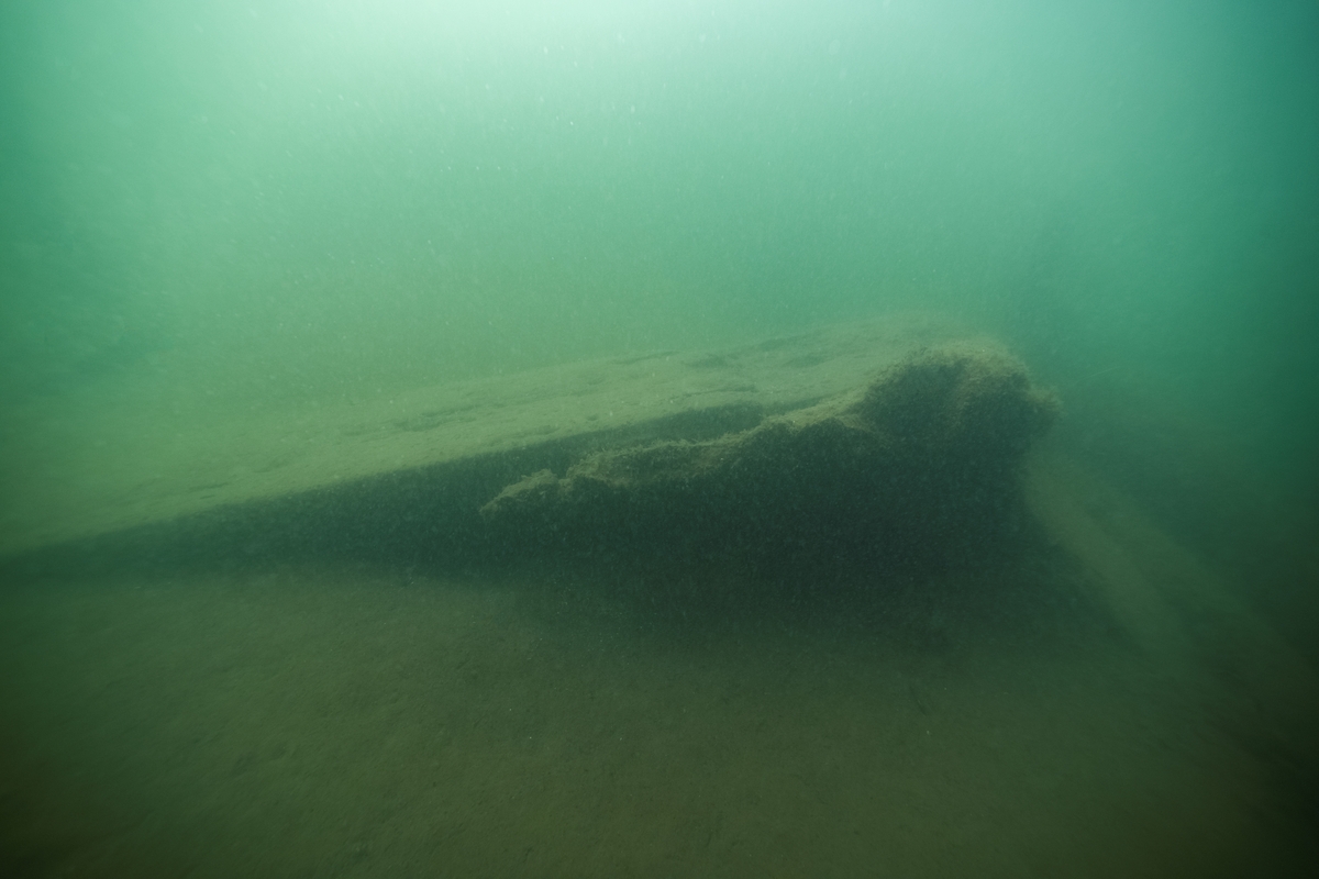 Däcksbalkarna pekar snett ned i dyn. Fartygslämning L1978:4814 Fredrik Wilhelm.