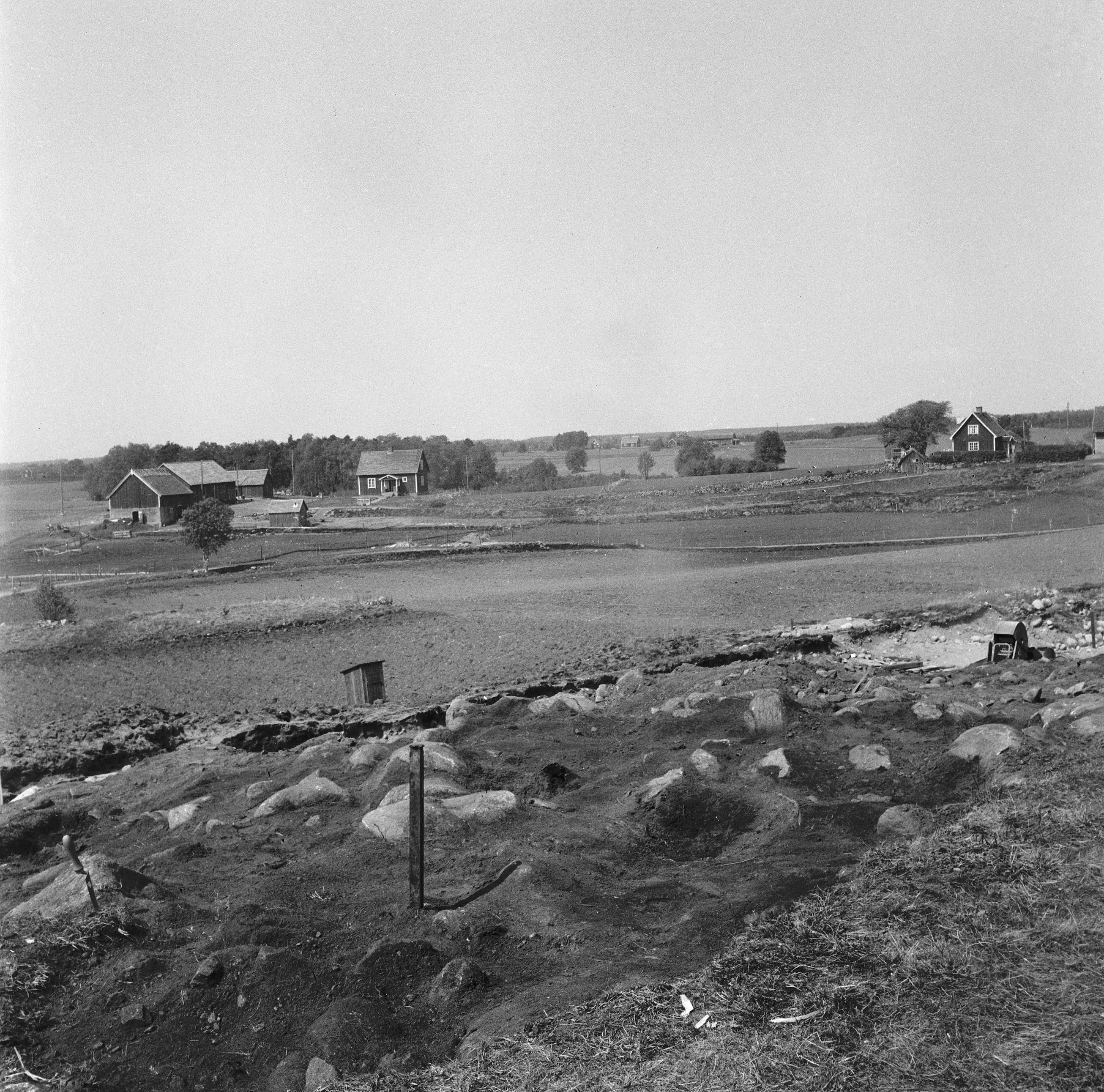 Stenläggningen efter avskalning av torv på en av gravarna. Foto från vänster.