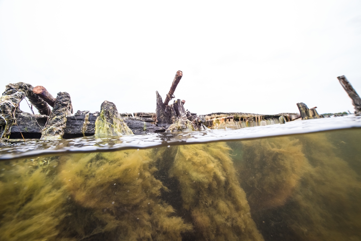 Spant som sticker upp ovanför ytan på fartygslämning ID 13