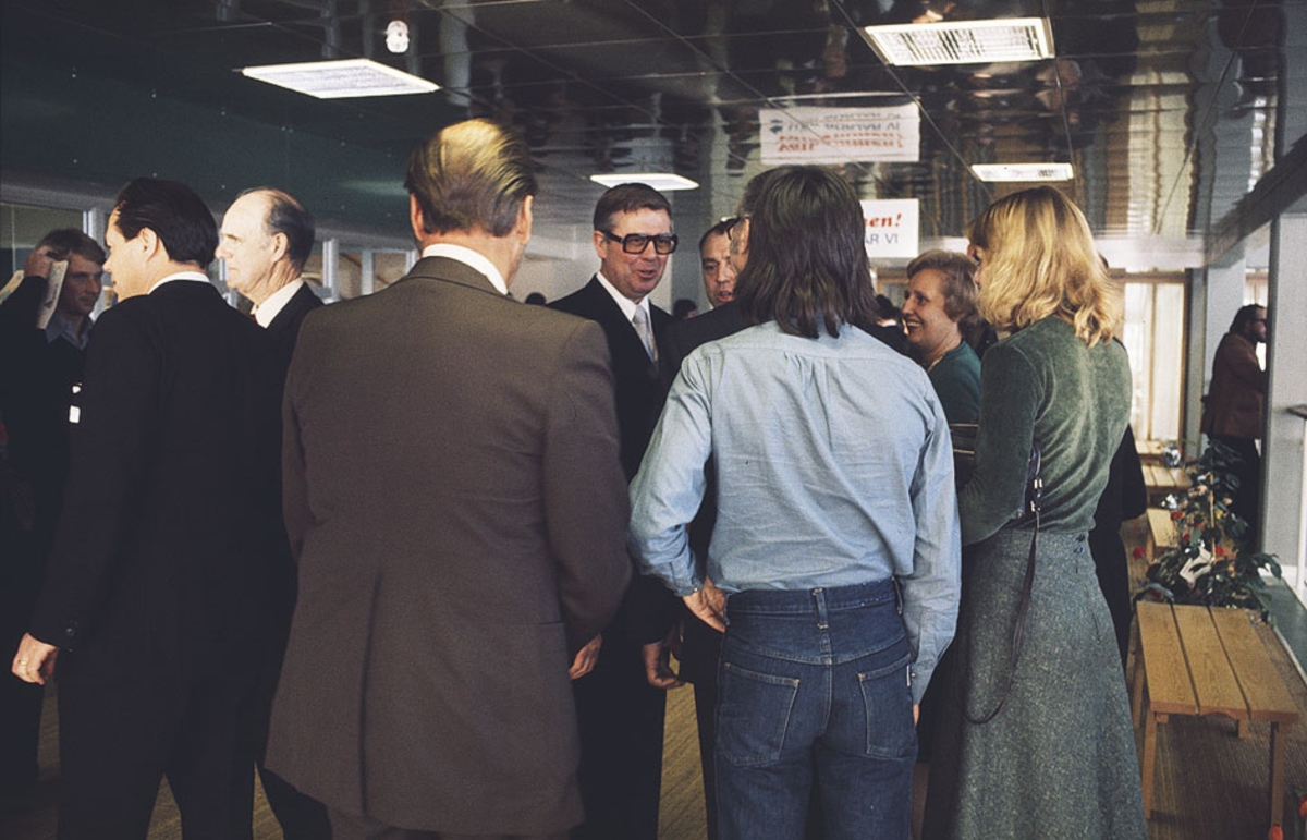 Titel: Besökare i Albin Marins anläggning i Gustavsvik, Kristinehamn, vid invigningen 23 januari 1976.