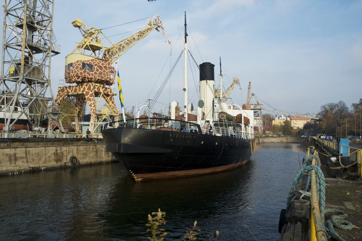 Museifartyget SANKT ERIK i docka på Beckholmen, Stockholm.