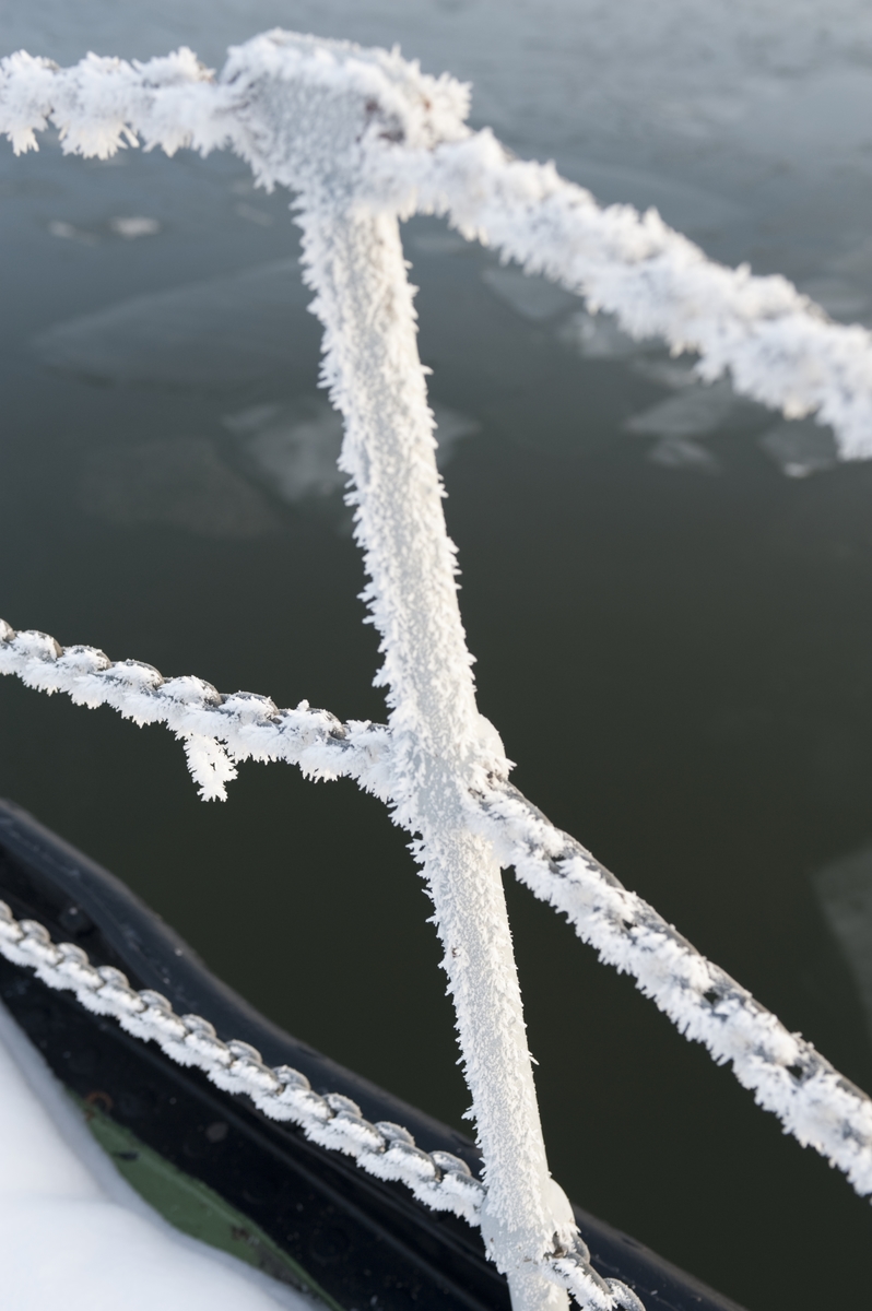 Isbrytaren Sankt Erik. Detalj av reling täckt av rimfrost.