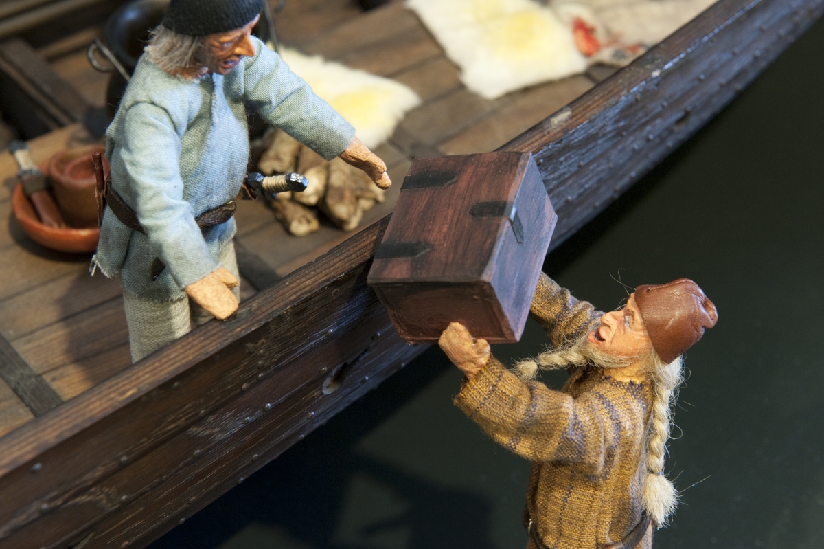 Titel: Små dockor tillverkade att passa modeller till utställningen "Shipping Shopping