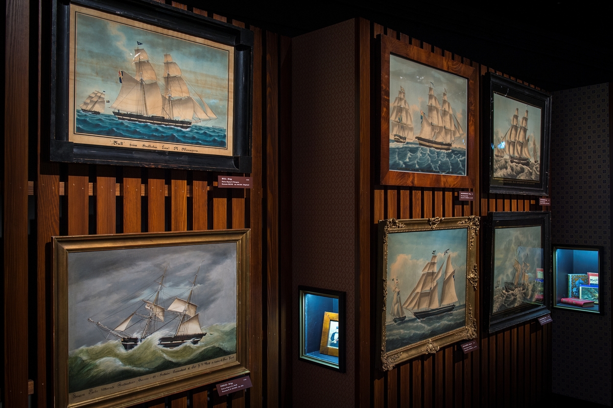 Titel: Utställning "Älskade skepp" på Sjöhistoriska, tavlor från museets samlingar.