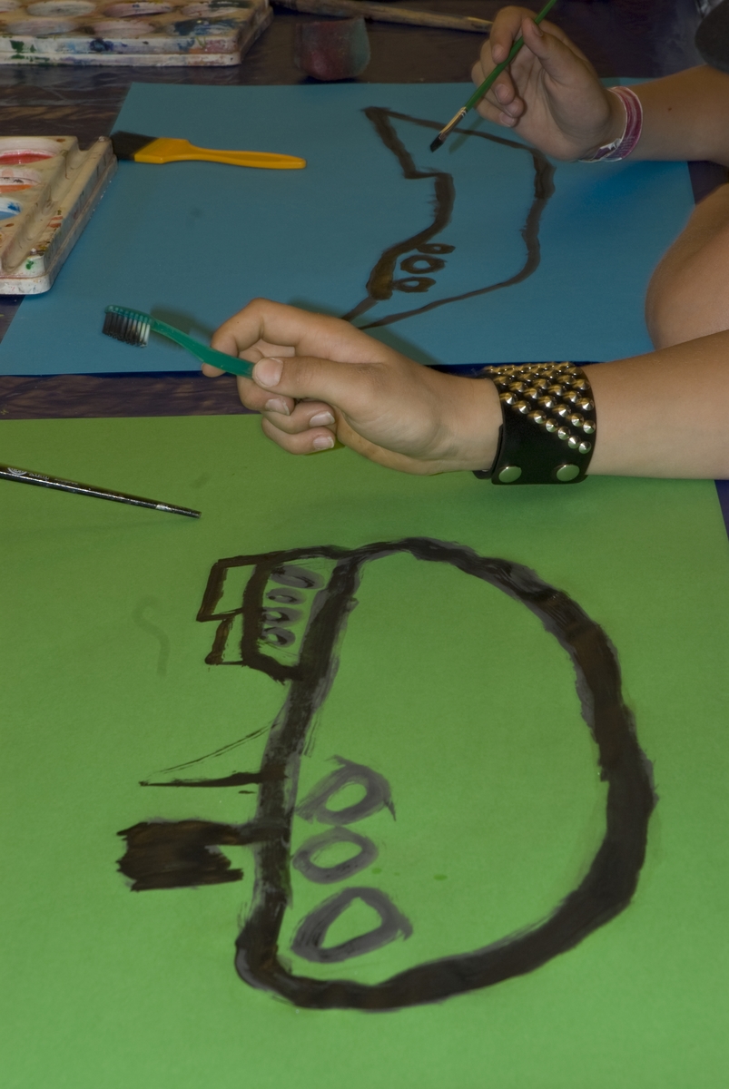 Titel: Marinarkeologisk pedagogik, maj 2008. I Ruskpricken målar eleverna från Fredrikhovsskolan hur de tror att vraket ser ut.