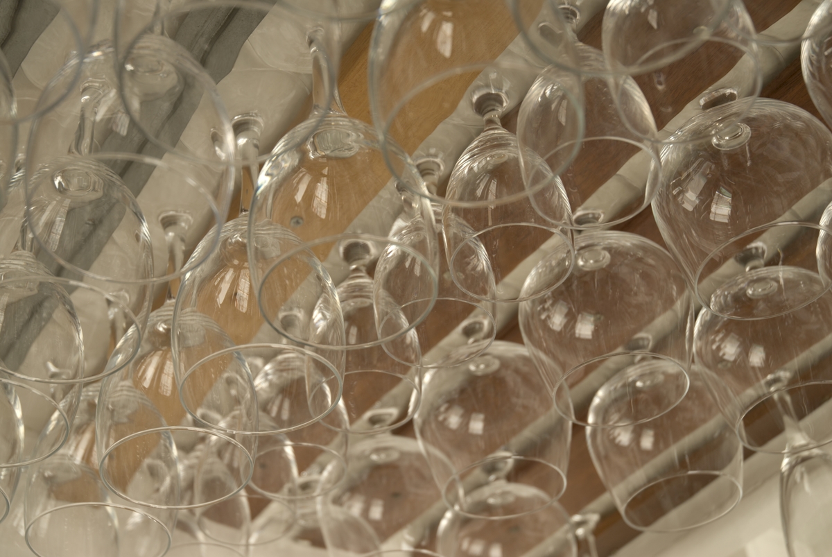 Dricksglas hängande i taket.