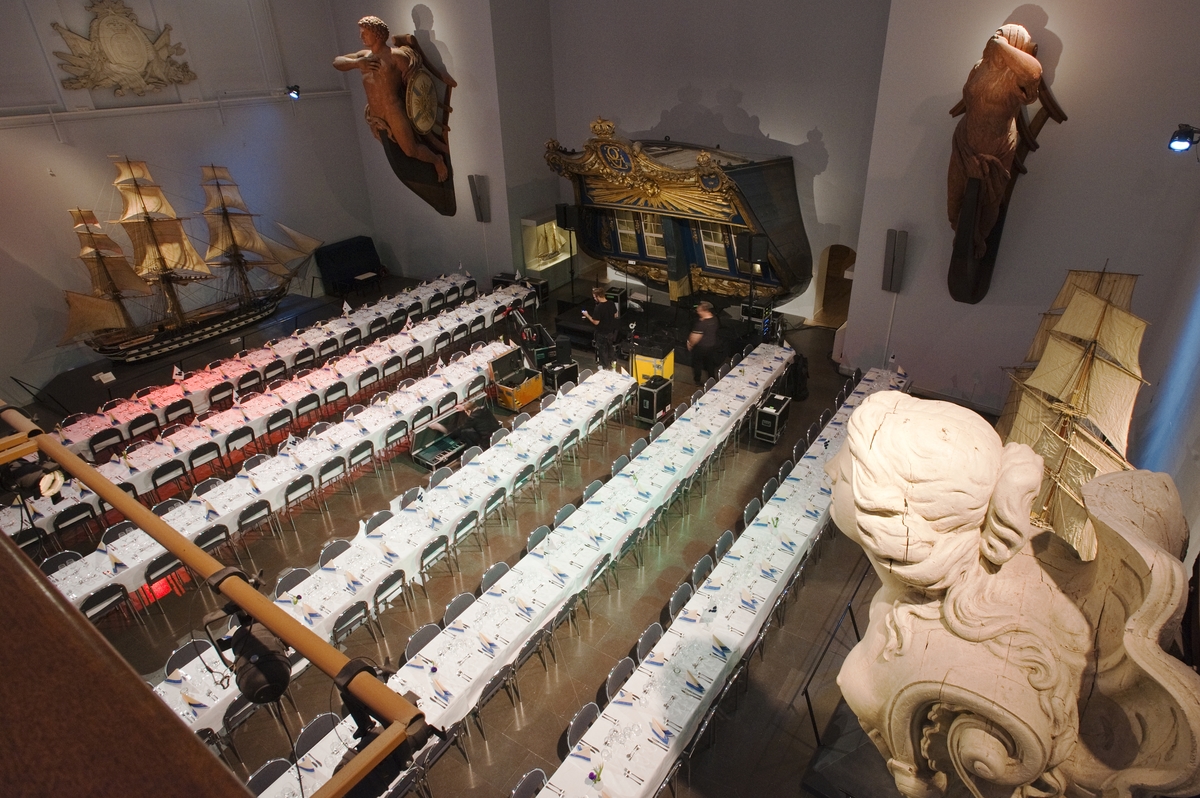 Titel: Bilder från minneshallen på middagsdukning för 200 personer.
