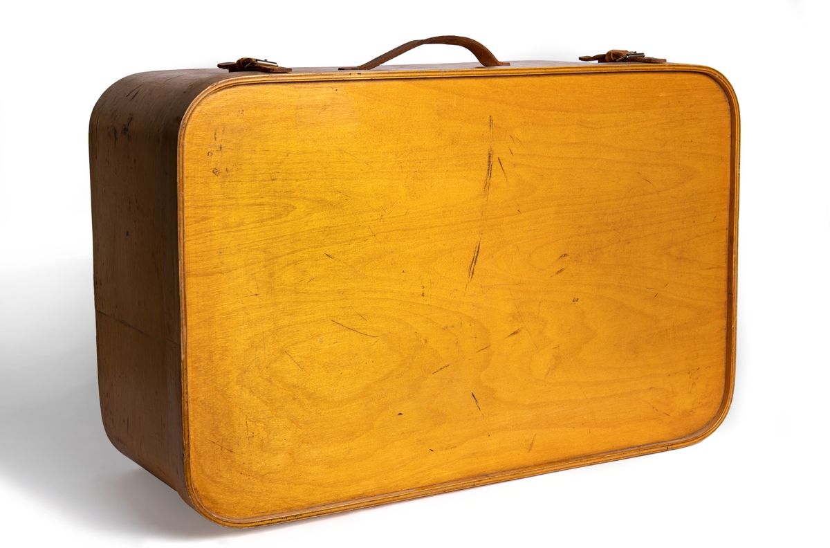 Resväska i fanér som togs med av familjen Rosen på flykt från Nargö, Estland den 4 november 1943.