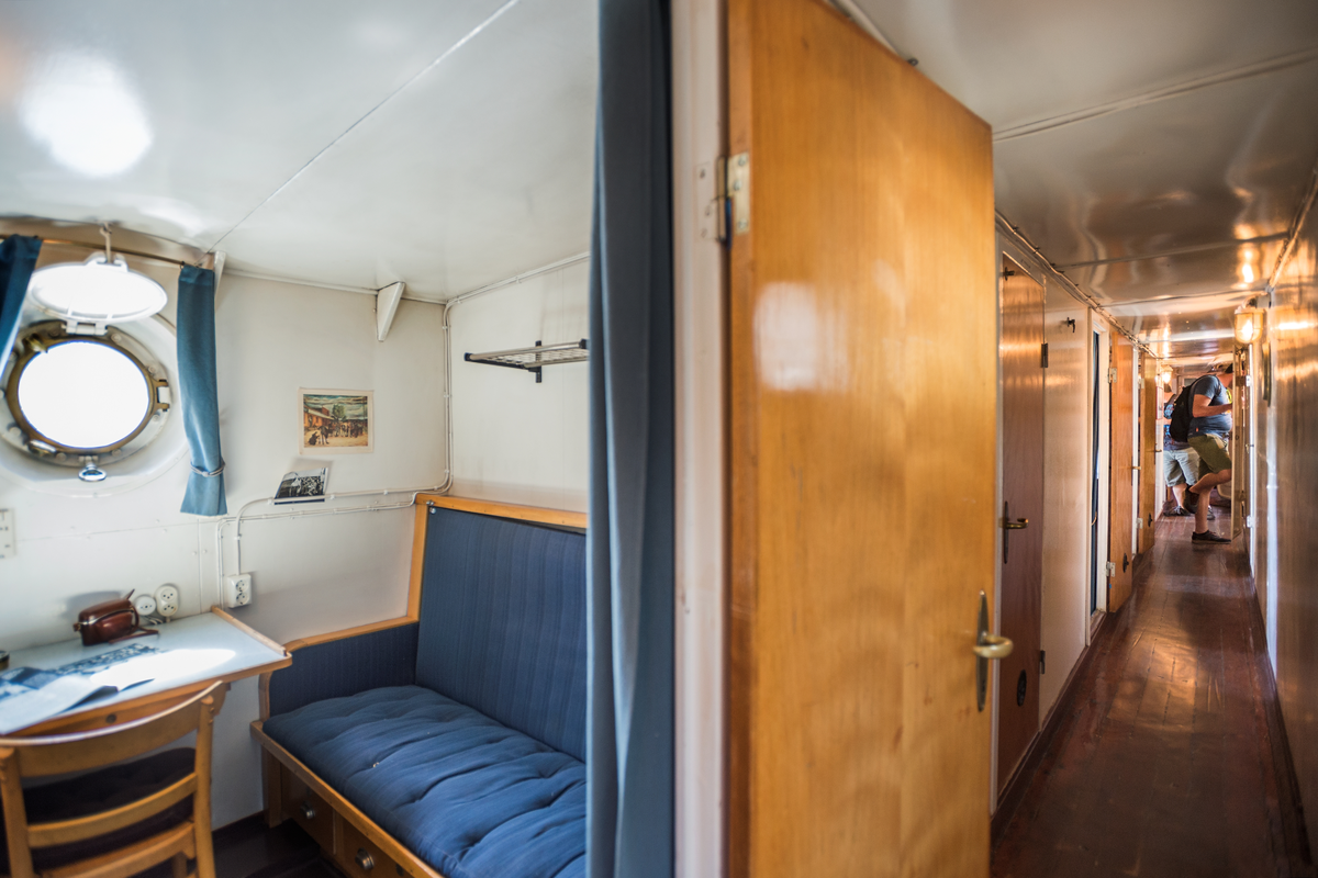 Titel: Interiöra bilder ombord Finngrundet, nya utställningar med bl a dukat bord i byssan och personlig inredda hytter.