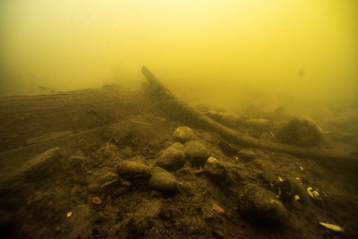 Bilden visar båtlämningen delvis frilagd.