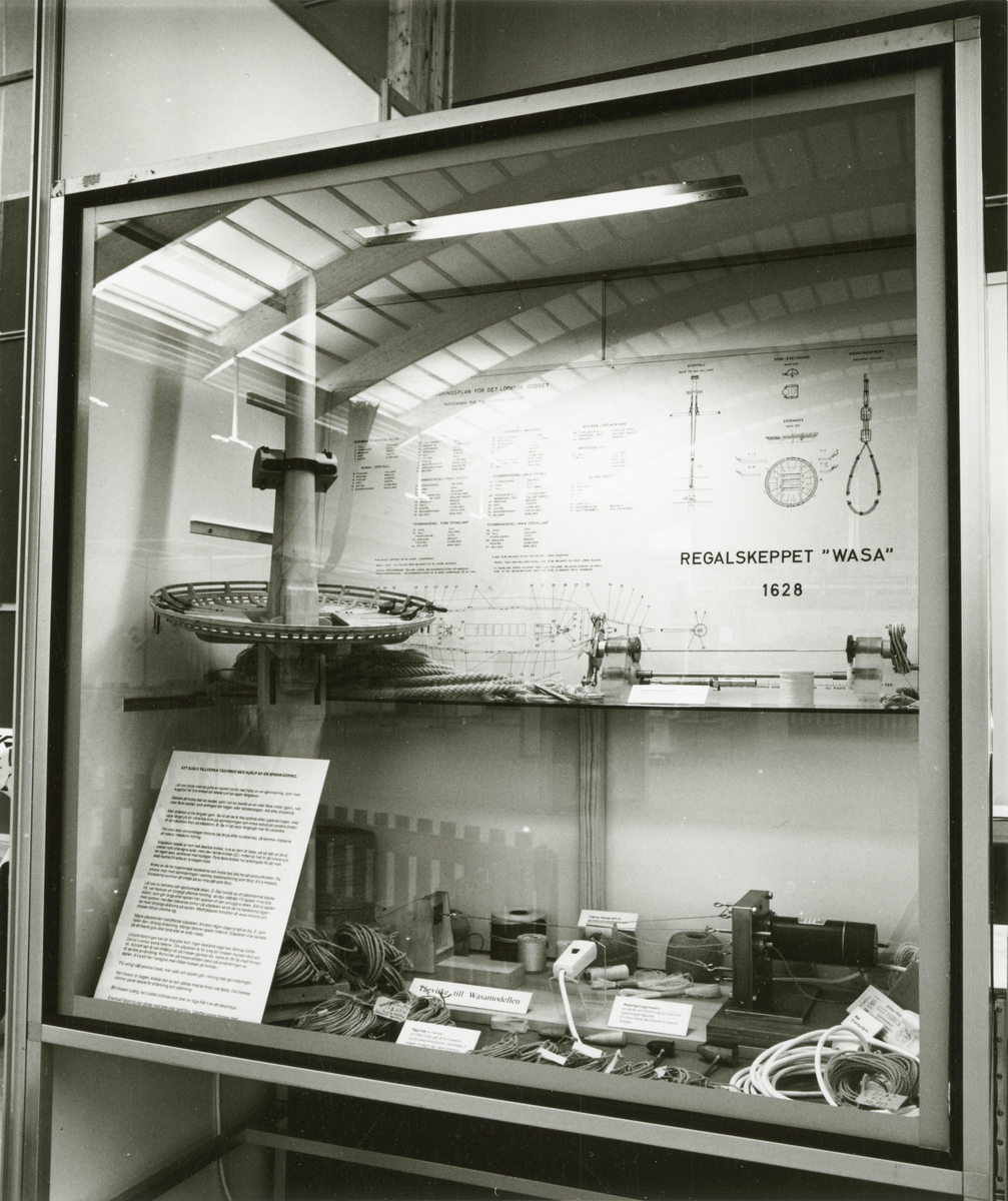 Utställning på Hobbymässan om byggandet av VASA-modellen. Monter som visar material och verktyg som används vid bygget av modellen.