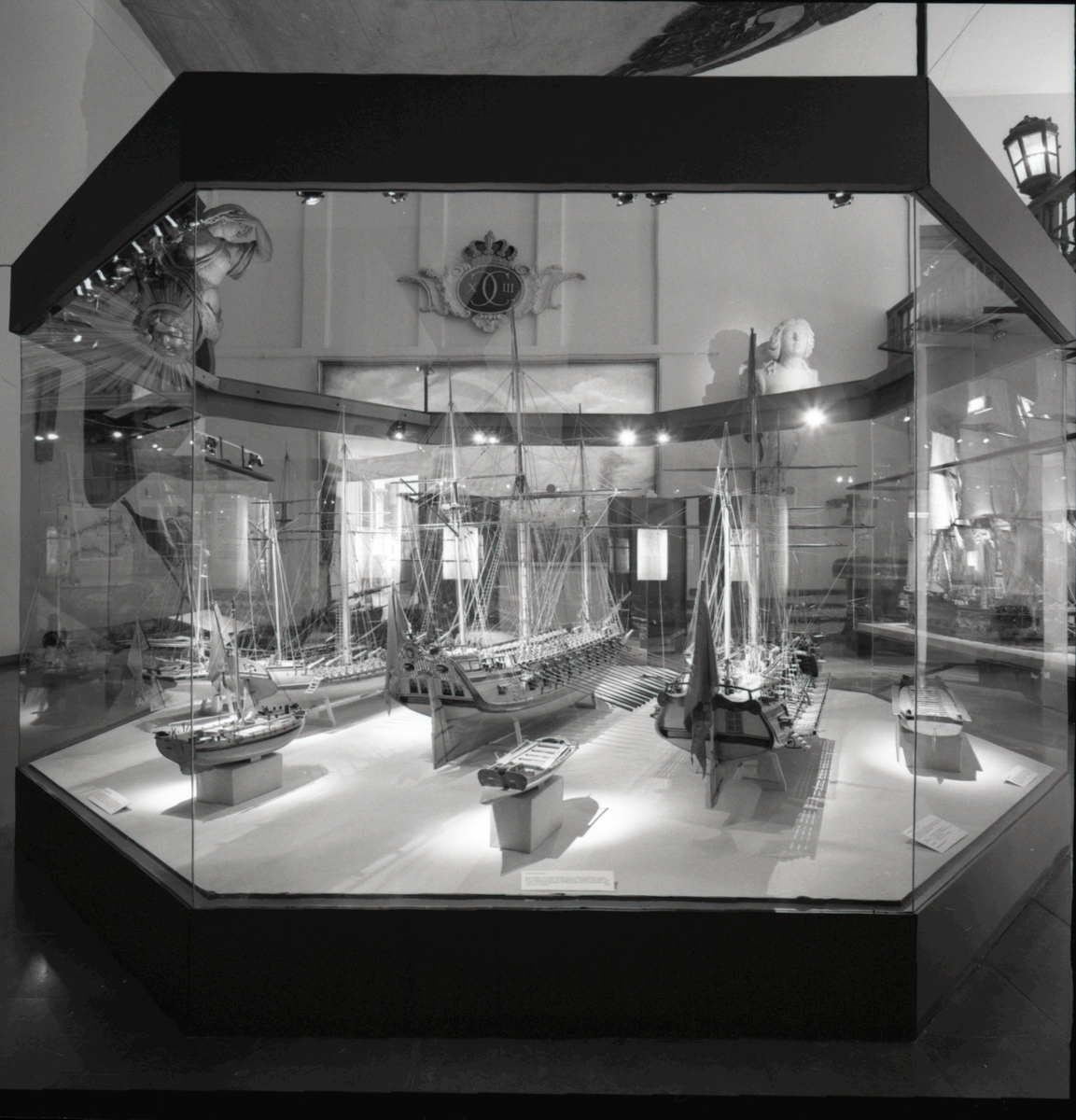 Utställningen "Slaget vid Svensksund". Monter med fartygsmodeller bl.a. skärgårdsfregatter och kanonslupar.