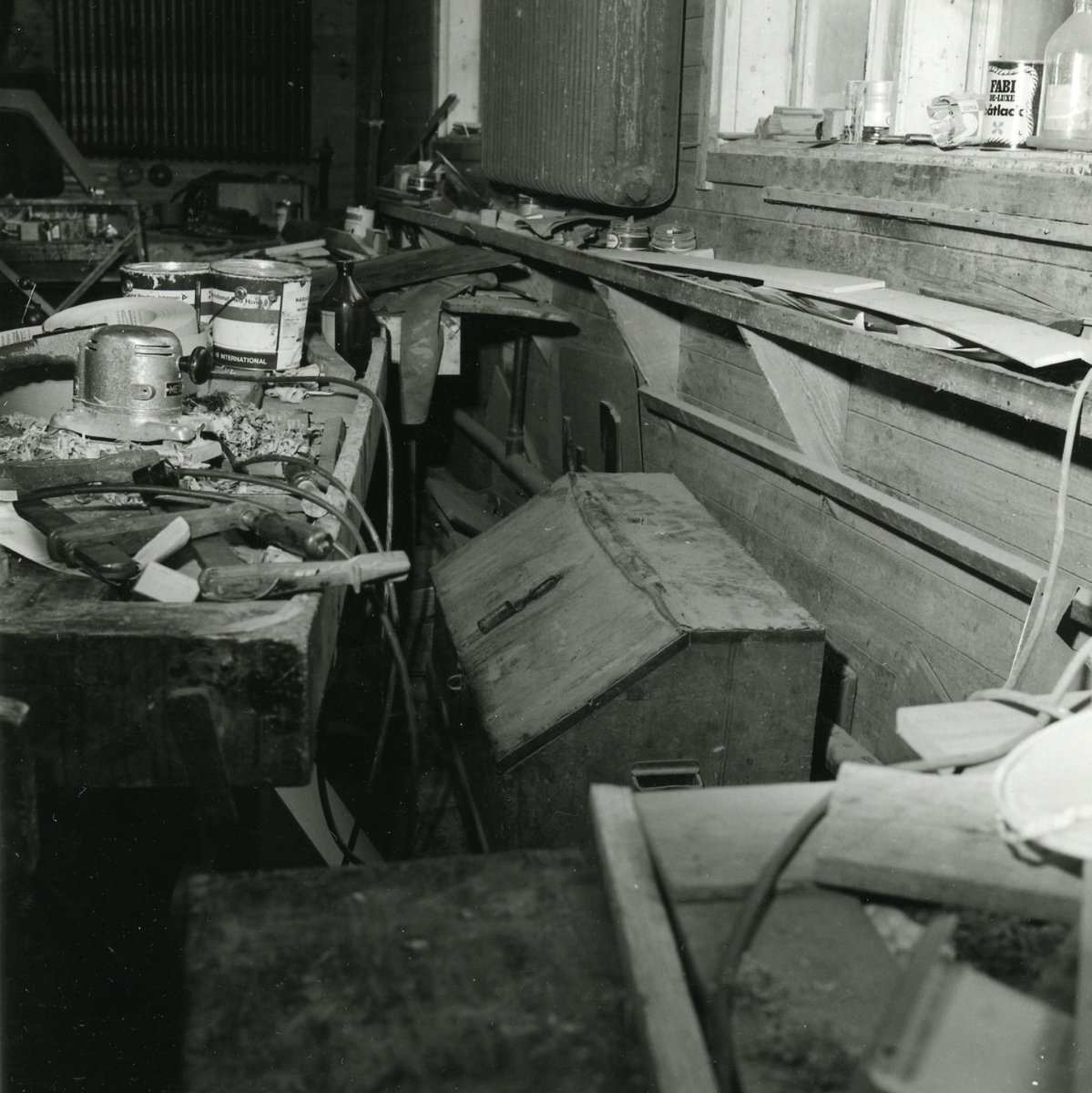 Karl Fröbergs Verktygslåda. Tillverkad under hans tid på Gustafsson & Anderssons Varv AB på Kungsholmen. Varje arbetare hade sina egna handverktyg. De förvarades, oftast inlåsta, i den personliga verktygslådan. Verktygen var mycket värdefulla och många av dem var hemmagjorda. De var på 1930-talet försäkrade för 800kronor.