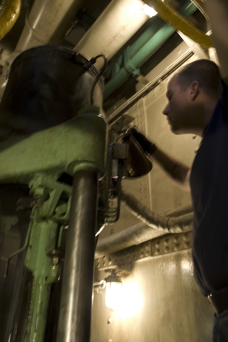 Personal i maskinrummet ombord på Sankt Erik.