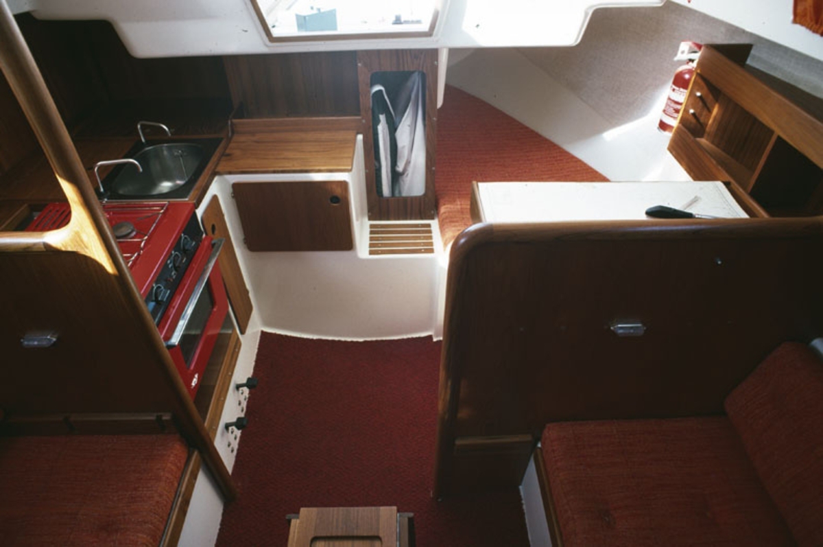 Interiör, pentry och navigationsbord i Scampi 30.