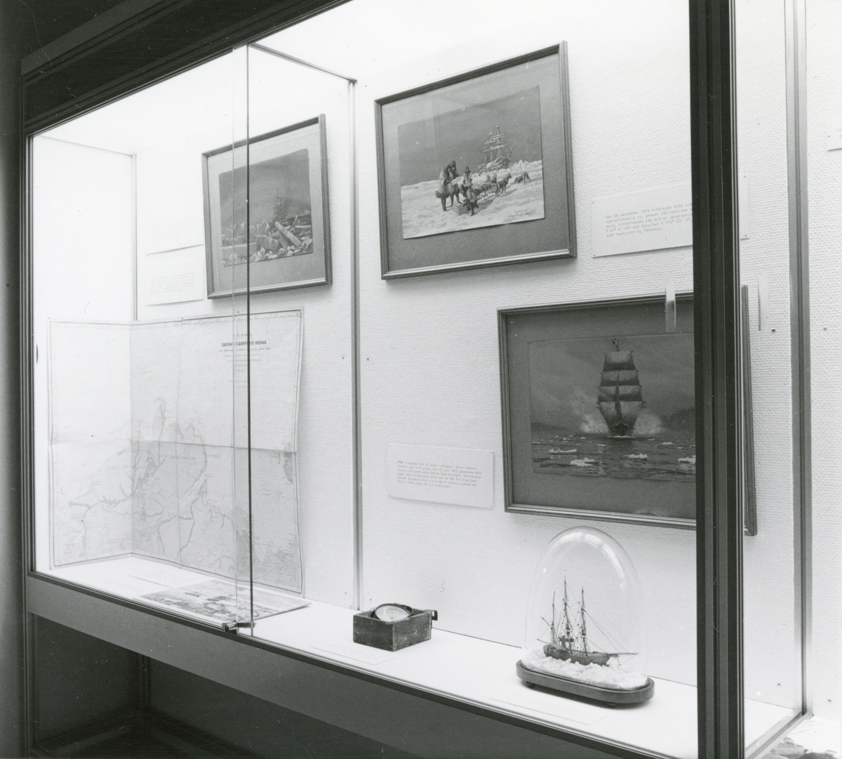 Utställningen "Vega 100 år". Del av utställningen i trappmonter men föremål kopplade till Vega-expeditionen.