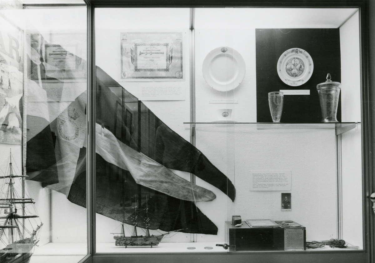 Utställningen "Vega 100 år". Del av utställningen i trappmonter men föremål kopplade till Vega-expeditionen.