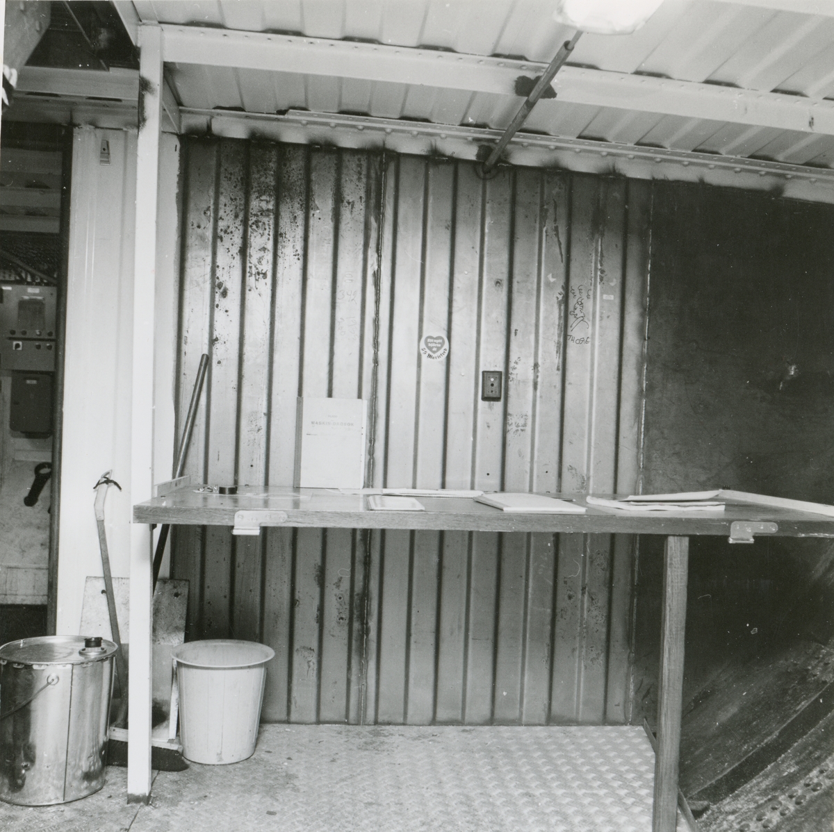 Nytt stålskott i maskinrum, ballast, akter om maskin, babord.