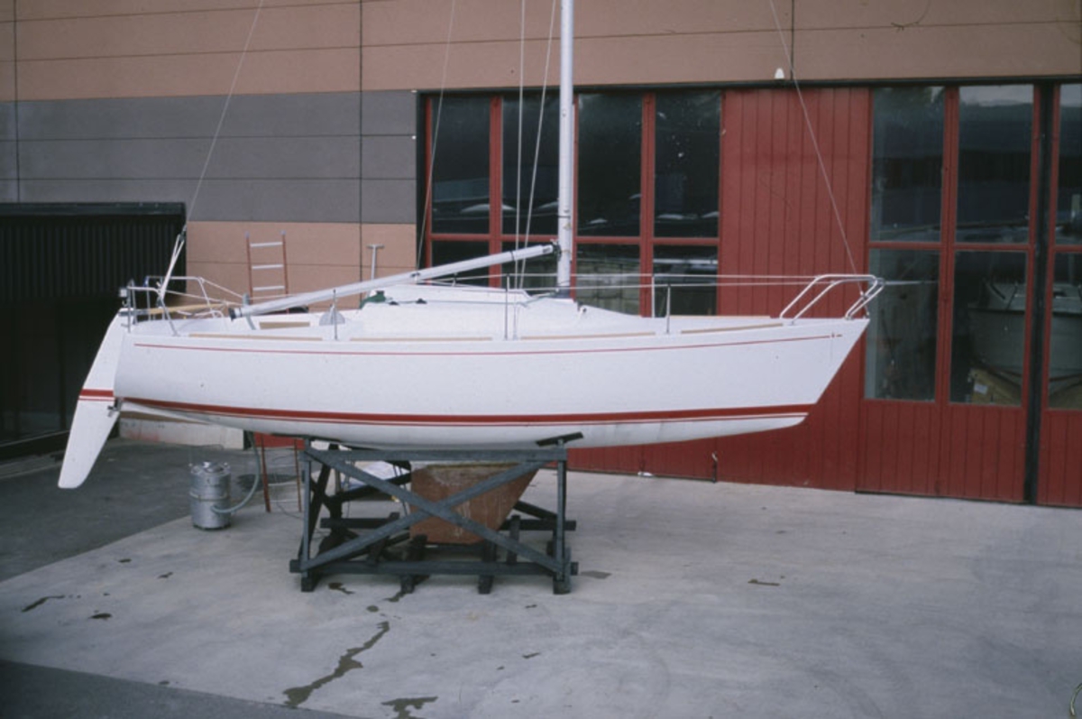 Albin 78 Cirrus utanför Albin Marins fabriksanläggning i Kristinehamn.