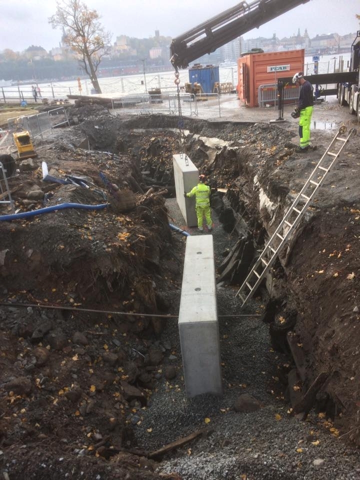 Ankarstenarna placeras med stor försiktighet i vraket på en bädd av finare singel.