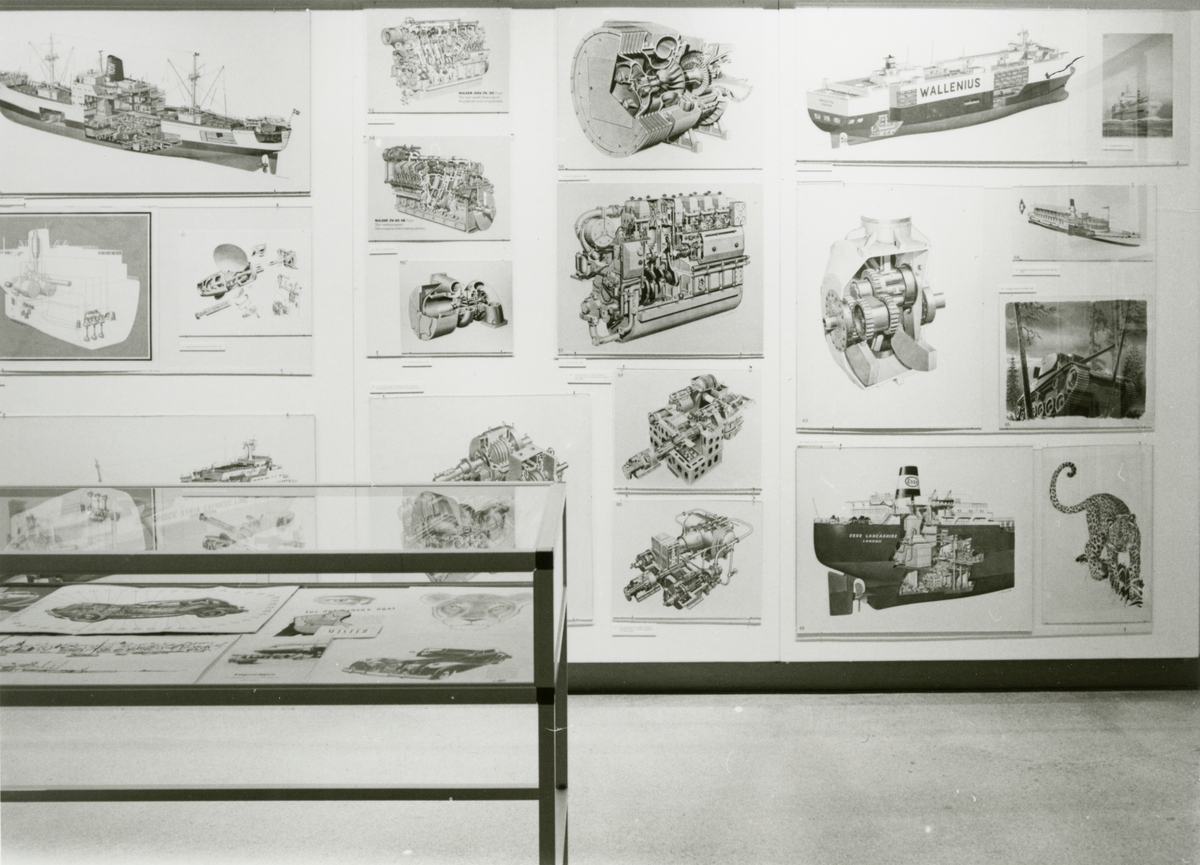 Utställningen "Nikolai Kowarsky en ritbordskonstnär". Skärm med illustrationer av konstnären.