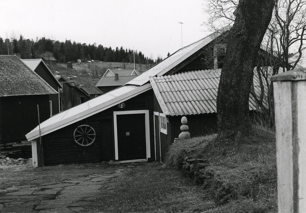 Ångermanland, Trysunda. Den som inte bedriver fiske ägnar mycket tid till att pyssla och pynta sina boningar. Här är f d fiskaren och industriarbetaren Gustav Adolf Lundströms sjöbod. Lundström köpte gården efter sin far 10 år sedan och använder den nu som sommarbostad.