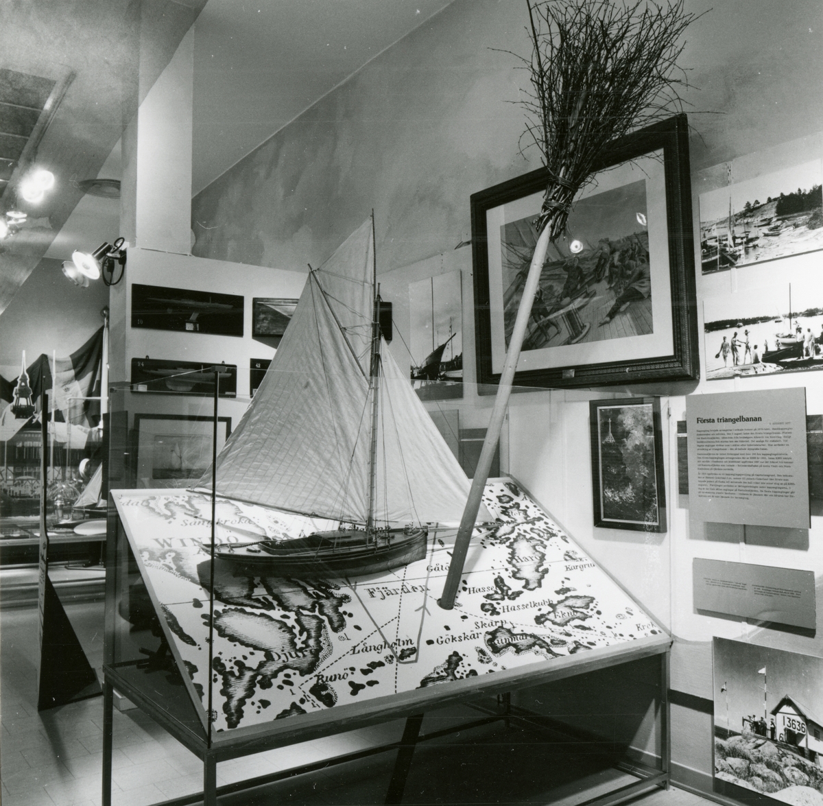 Utställningen "Kungliga seglare och seglande kungar". Monter som presenterar första kappseglingen på triangelbanan på Kanholmsfjärden.