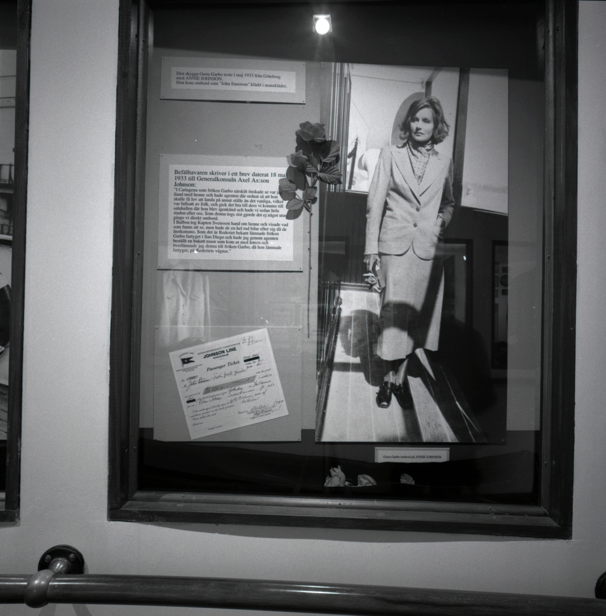Utställningen "Johnson line 100 år, 1890 - 1900 Nordstjernan". Utställningsinteriör som visa Greta Garbo när hos reste med ANNIE JOHNSON år 1933. Hon kom ombord som "John Emerson" klädd i manskläder.