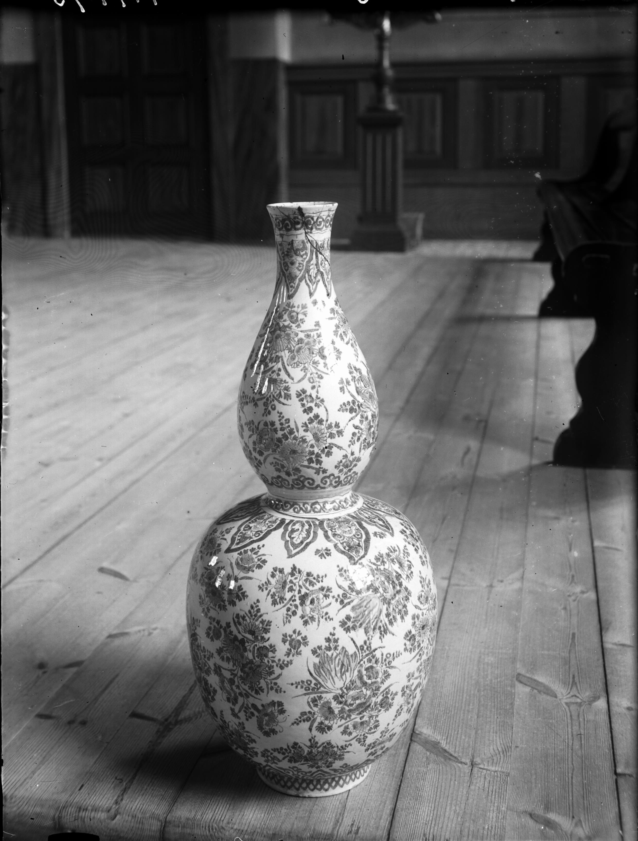 Kurbitsvas av fajans med blå dekor. 1700-talet.