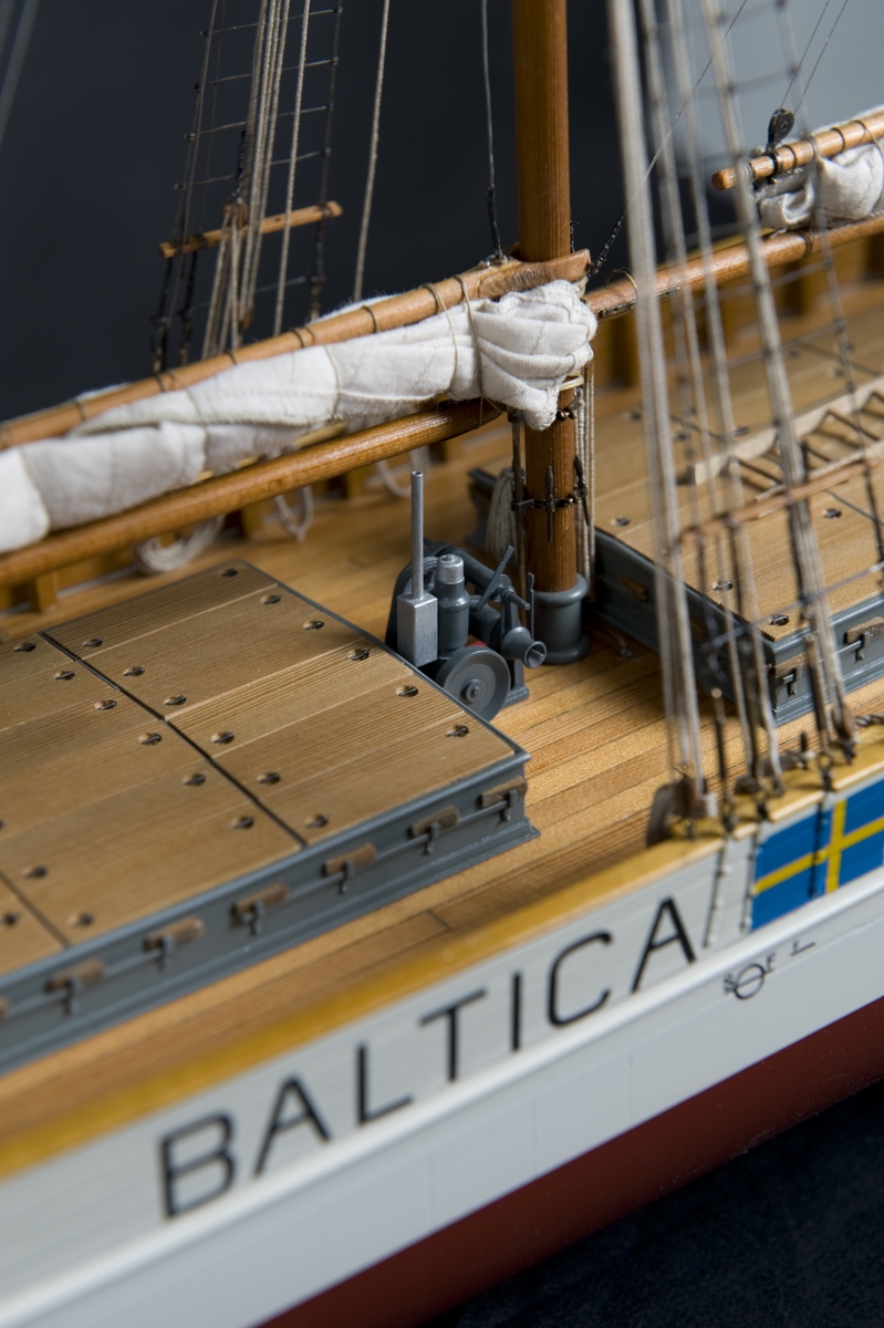 Titel: Detaljbild av modell av tremastskonaren BALTICA, byggd i Sjöhistoriska museets modellverkstad av Stefan Bruhn och Jan Claesson