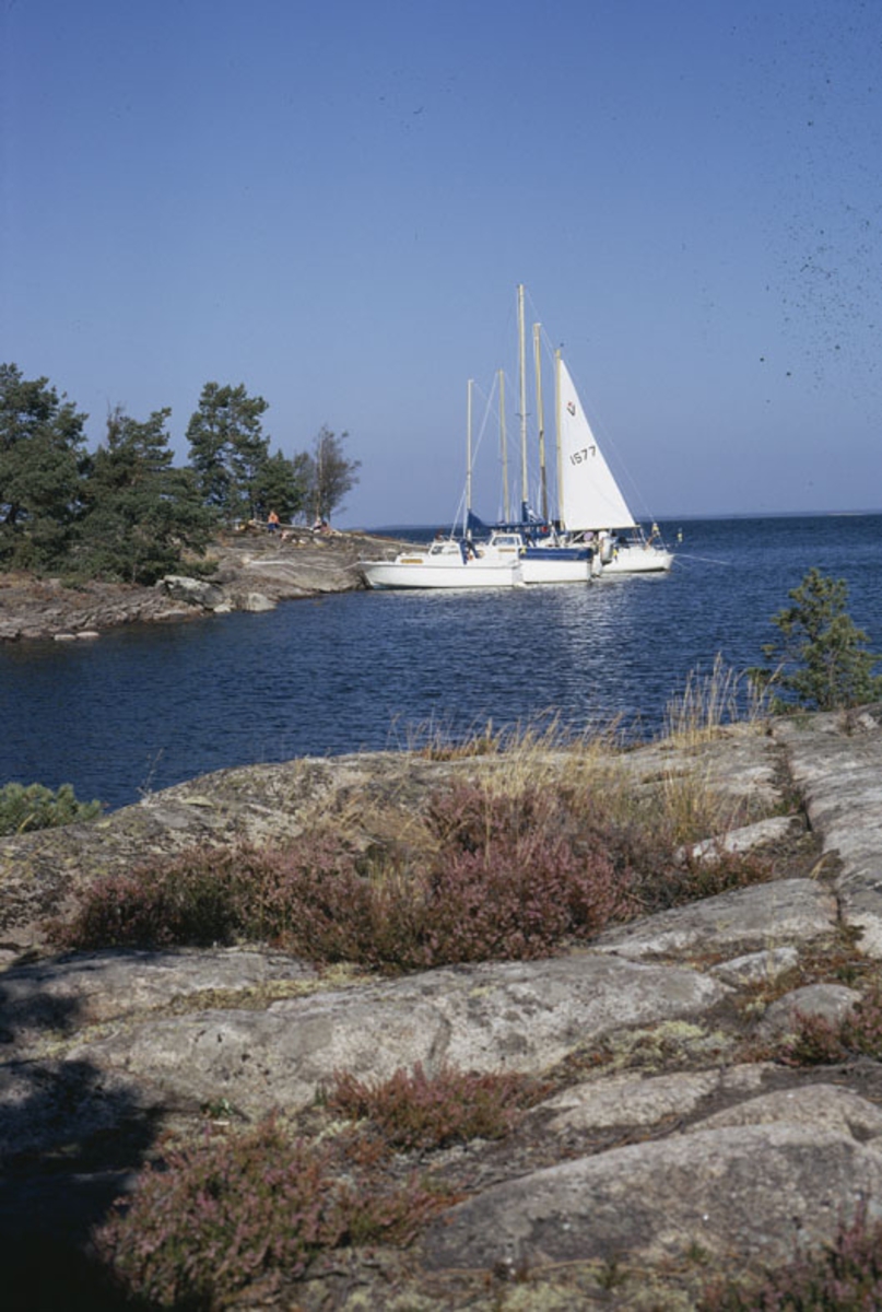 Albin-båtar förtöjda vid holme. Marknadsföringsbild.