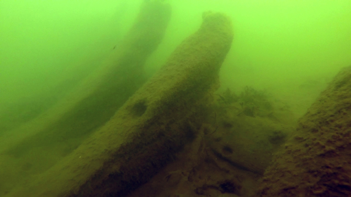 Uppstickande spanttoppar utmed vrakets styrbordssida