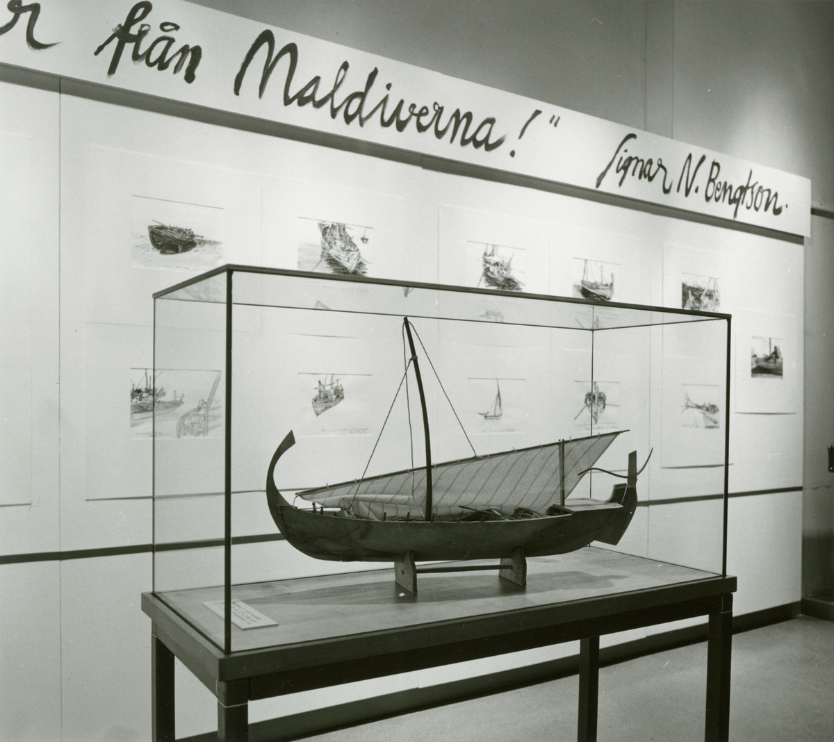 Utställningen Båtar från Maldiverna med teckningar av Signar Bengtsson.