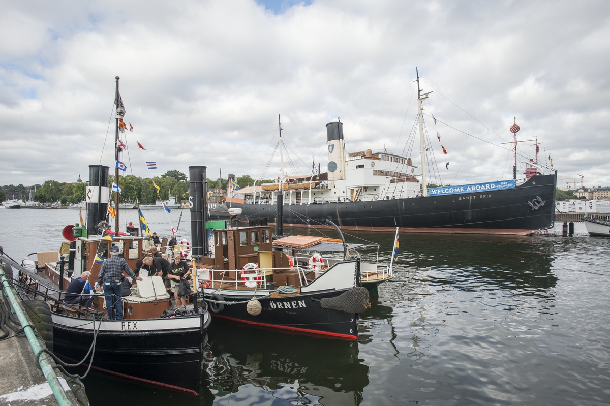 Stockholm Steam på Galärvarvet. I förgrunden bogserbåtarna Rex och Örnen, i bakgrunden isbrytaren Sankt Erik.