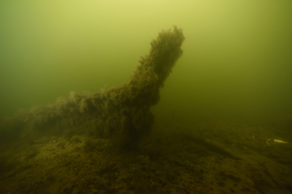 Stäven på vrak 2 sticker delvis upp ur bottnen.