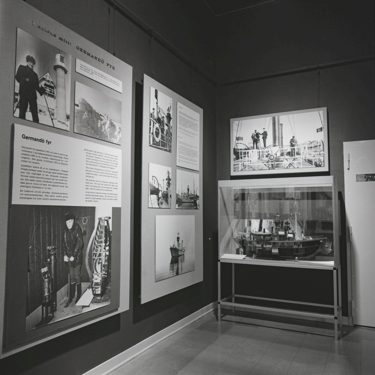 Utställningen i Fyrrummet. Skärmutställning om Germandö fyr samt ett fartygsmodell av ett fyrskepp.
