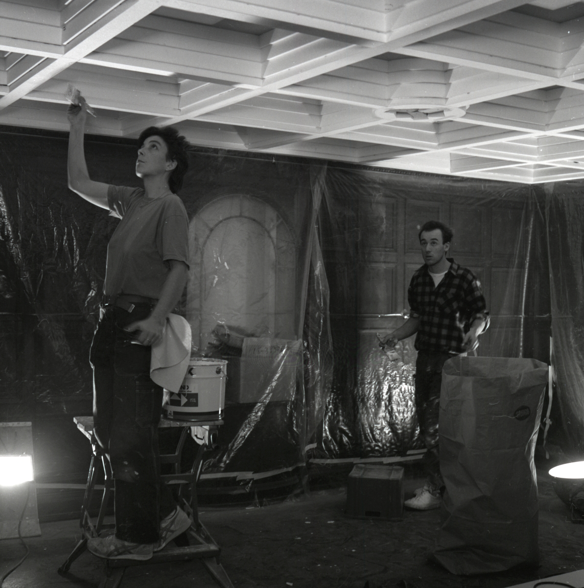 Utställningen "Johnson line 100 år, 1890 - 1900 Nordstjernan". Måleriarbete inför utställningen i utställningslokalen.