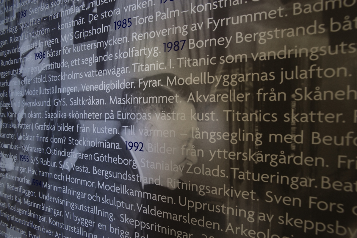 Utställning i trappmonter på Sjöhistoriska museet. Vernissagekort genom tiderna visas.