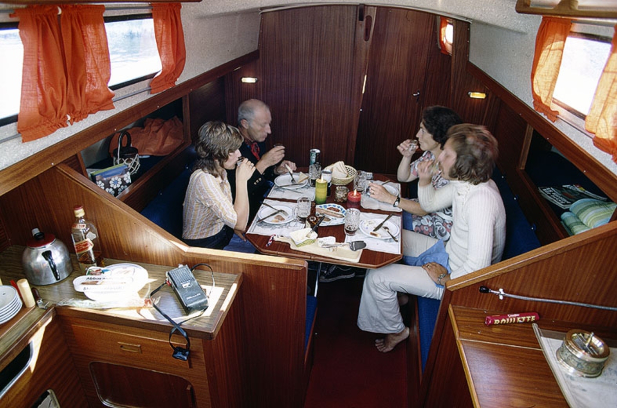 Måltid i ruffen på en Albin Singoalla. Marknadsföringsbild.