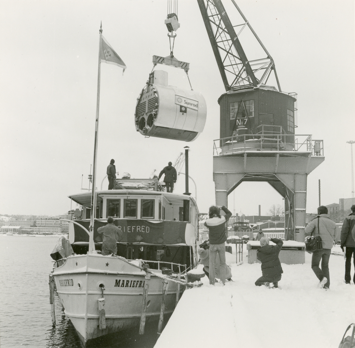 Den nya ångpannan lyftes ombord i S/S Mariefred vid Norra Hammarbyhamnen den 11:e mars år 1983.