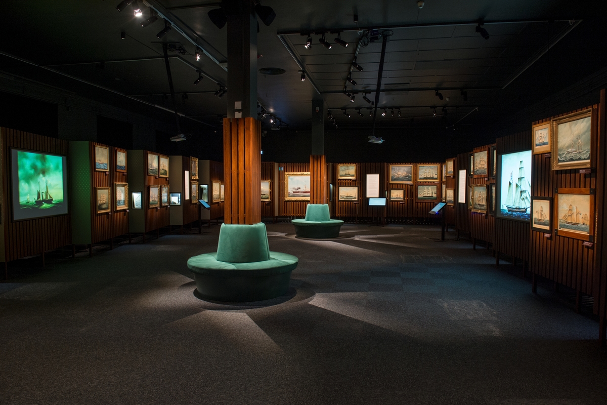 Titel: Utställning "Älskade skepp" på Sjöhistoriska, tavlor från museets samlingar.