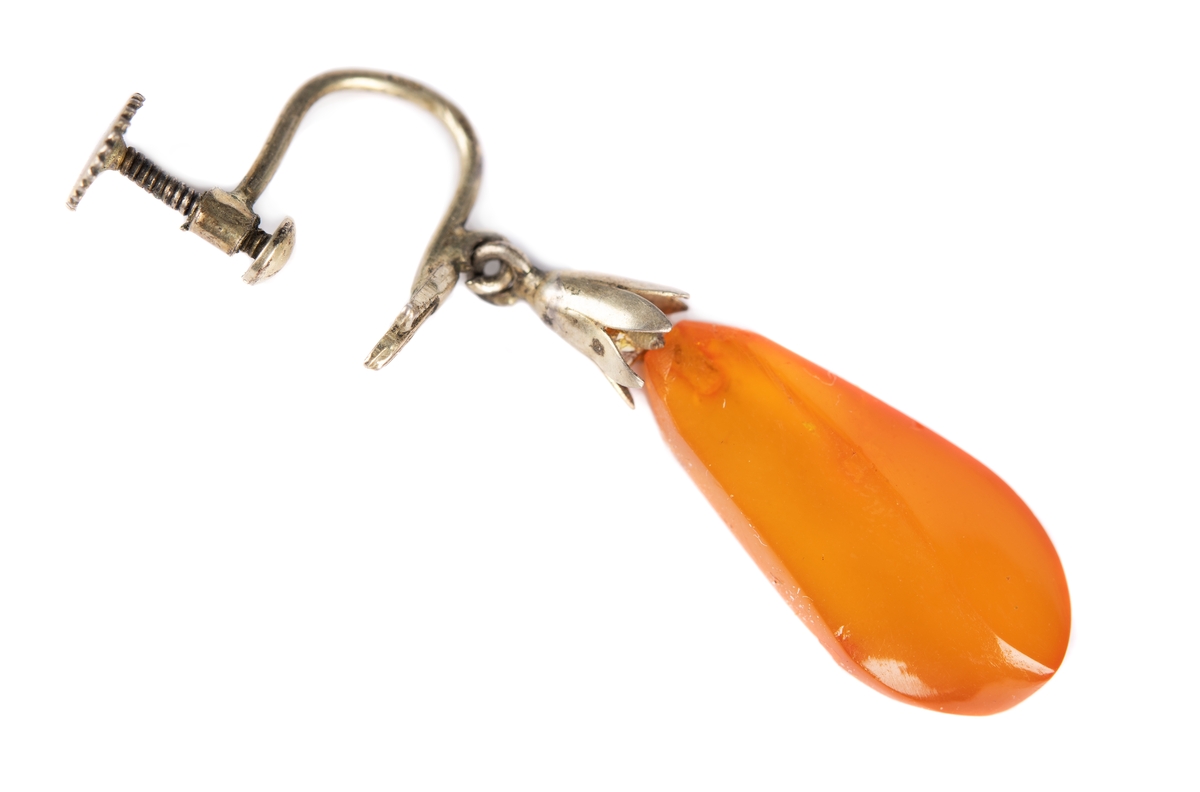 Örhänge med bärnsten. Togs med på flykt från Estland till Sverige 1944.