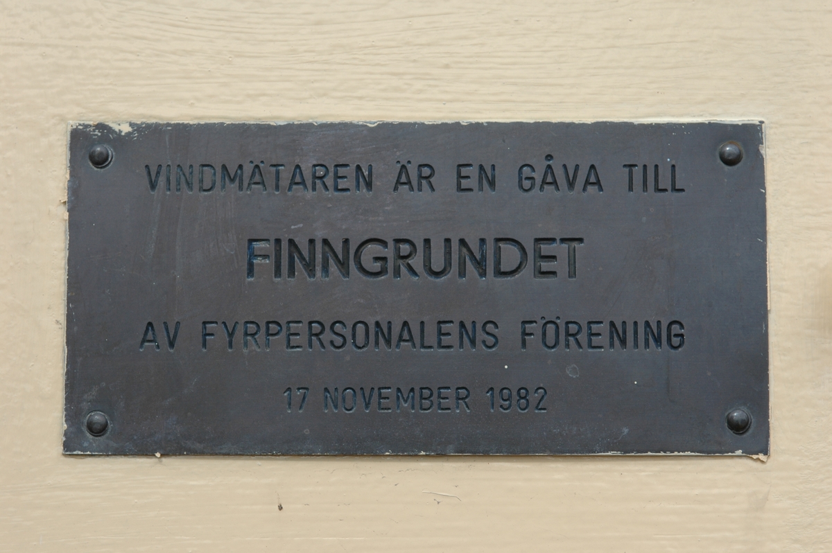 Fyrskeppet FINNGRUNDET. Minnesplakett med texten "Vindmätaren är en gåva till Finngrundet av fyrpersonalens förening 17 november 1982".
