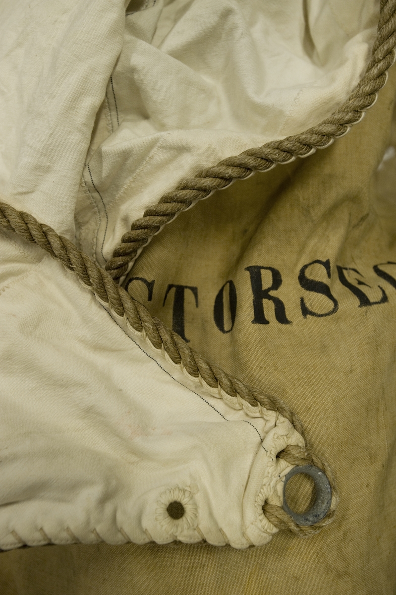 Visar repförstärkningarna i liken samt segelsäckar för fock och storsegel till Petterssonbåten WIKING X i Båthall II.