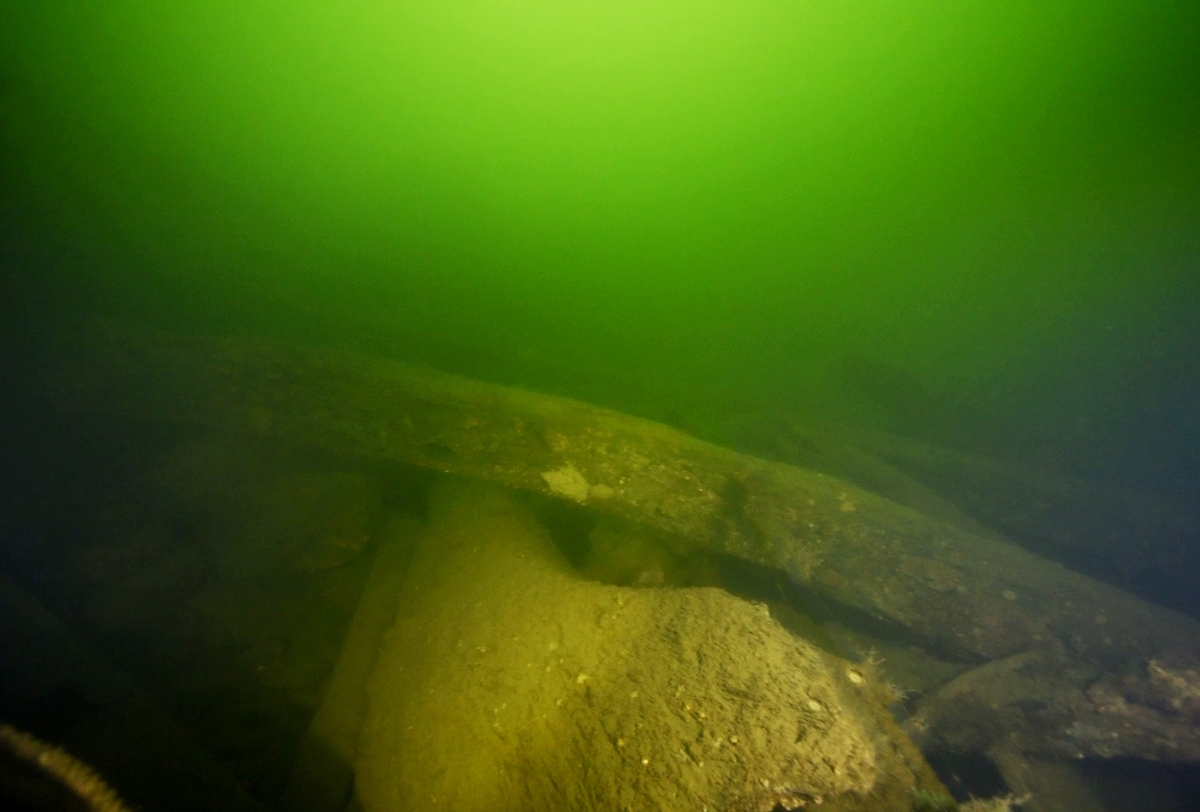 Galjonstimret ligger nedfallet på botten. Man kan se klacken där galjonen suttit.