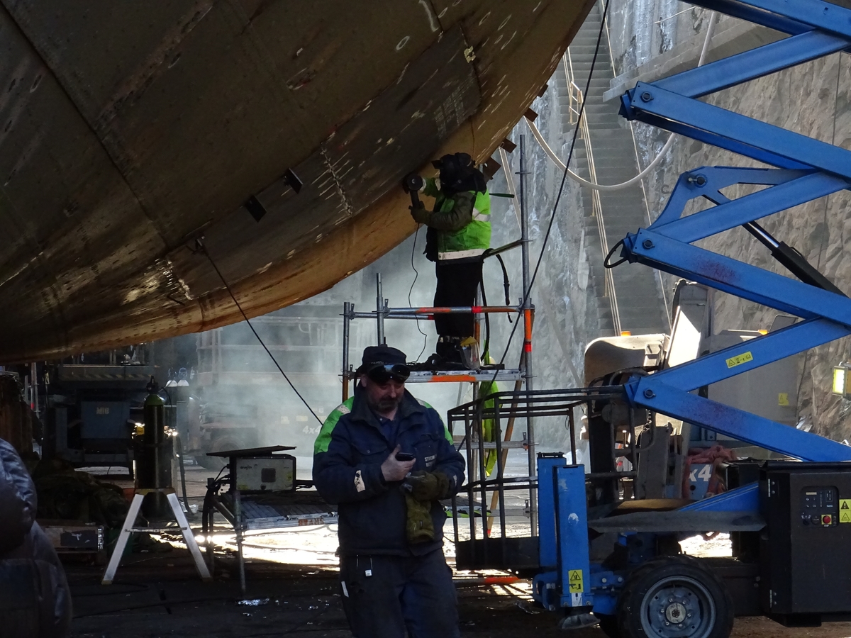 Isbrytaren SANKT ERIK på Stockholms Reparationsvarv. Skrovarbeten.