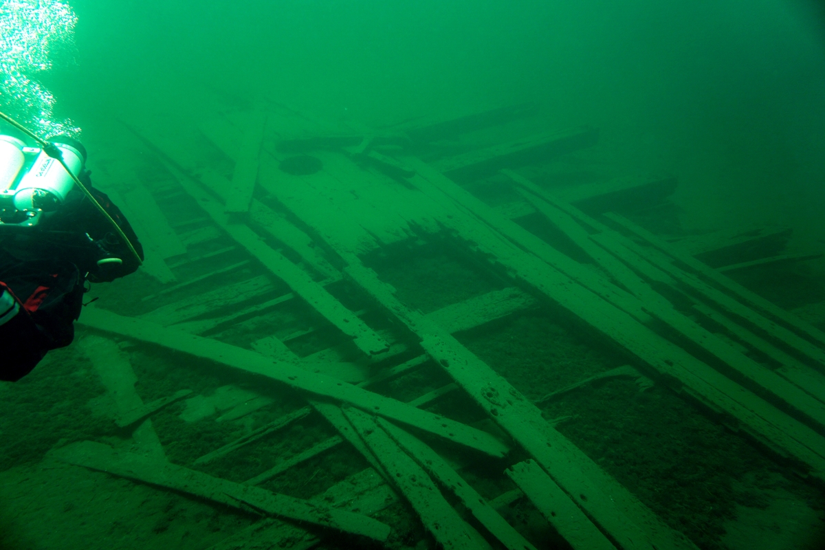 Urtagen för den mindre genomföringen syns mitt i bilden och den större genomföringen snett ned ner till höger.