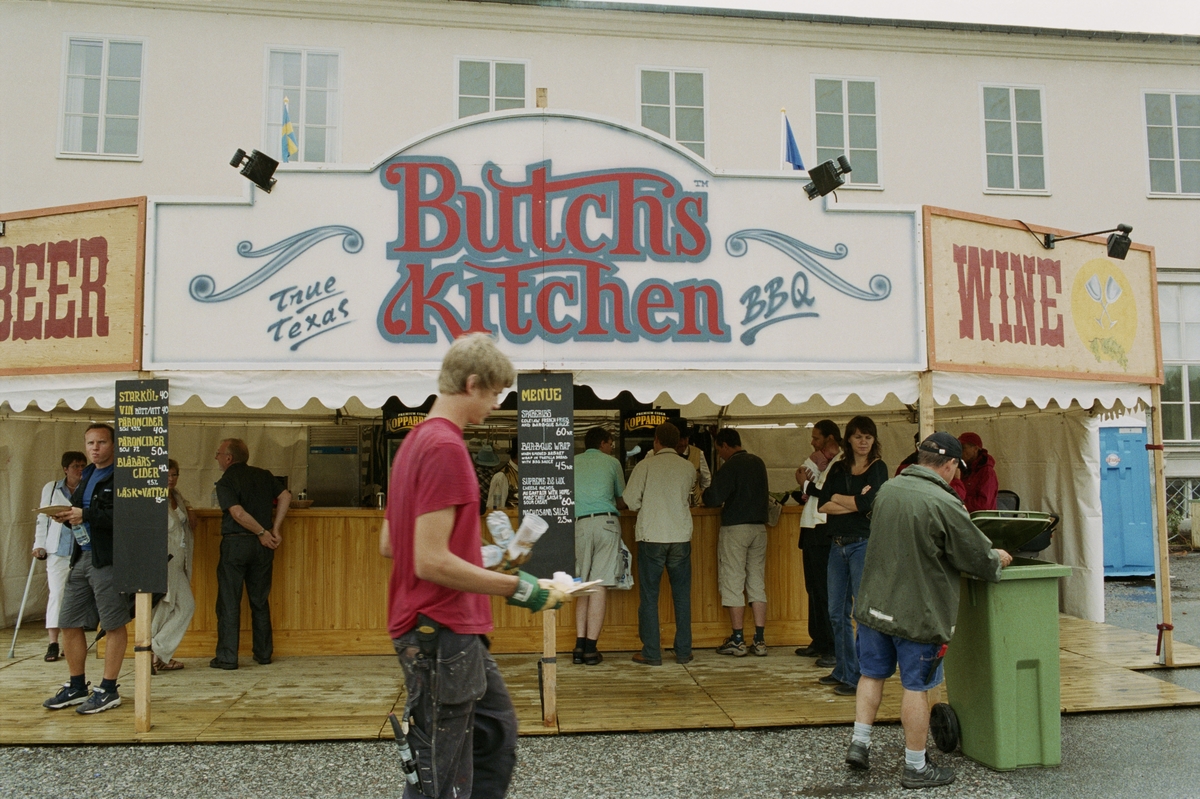 Sjöhistoriska Museet under 200-års jubileet av John Ericssons födelse. Öl- och mattält utanför museets. Butchs kitchen.